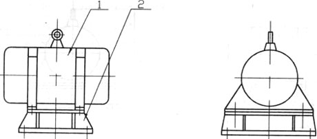 結(jié)構(gòu)如圖1所示。由振動(dòng)電機(jī)(1)、底座(2)兩部分組成。振動(dòng)電機(jī)和底座由螺栓緊密地固定為一體,由于底座堅(jiān)固地安裝在料倉(cāng)壁上,這樣就構(gòu)成了單質(zhì)點(diǎn)定向強(qiáng)迫振動(dòng)系統(tǒng)。