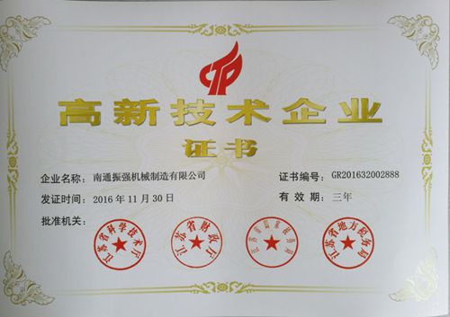 江蘇振強(qiáng)機(jī)械科技股份有限公司 >> 公司簡介 >> 資質(zhì)證書 >> 高新技術(shù)企業(yè)證書