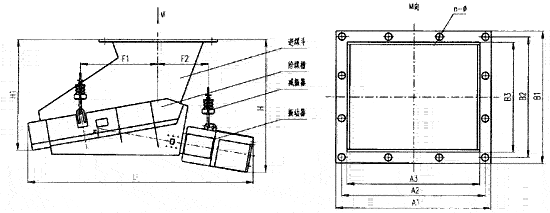 5. 調(diào)節(jié)前后減振器使給煤槽與進煤斗和落煤管成均勻間隙,間隙大小一般為20一30mm2不允許與其它部件相碰。并保證給煤槽呈水平狀態(tài),如需增大煤量,可使給料槽向下傾斜0一10°。