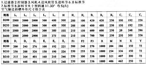 空氣斜槽輸送機(jī)由數(shù)個薄鋼制成的槽子聯(lián)接組成,并沿其輸送方向布置成一定的斜度。空氣輸送斜槽槽體沿著輸送方向安裝成向下傾斜4%~6%的斜度。