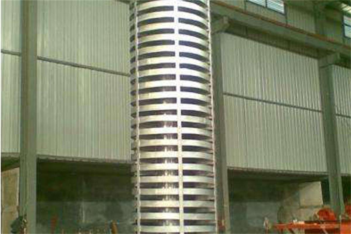 垂直振動輸送機(jī)是通過激振器強(qiáng)迫振動,使輸送塔作沿垂直方向的直線振動和繞鉛垂中心軸的扭動振動,兩個振動的合成,使物料朝 螺旋運(yùn)動的方向斜拋,形成了物料沿螺旋槽向上的輸送過程。垂直振動輸送機(jī)是由提升槽、振動電機(jī)、減振系統(tǒng)和底座等組成。垂直振動輸送機(jī)分開槽式、封閉式兩種結(jié)構(gòu)。